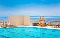 A szálloda kínálata: tengervizű nyitott medence napernyőkkel és nyugágyakkal, tengervizű fedett medence, éttermek, terasz, bár, mini wellness (szaunák, whirlpool, fitness) széfbérlési lehetőség a recepción, ajándékbolt, saját kikötő