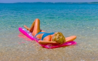 Strand: kavicsos, sziklás (kb. 70 m-re); napernyők és nyugágyak felár ellenében